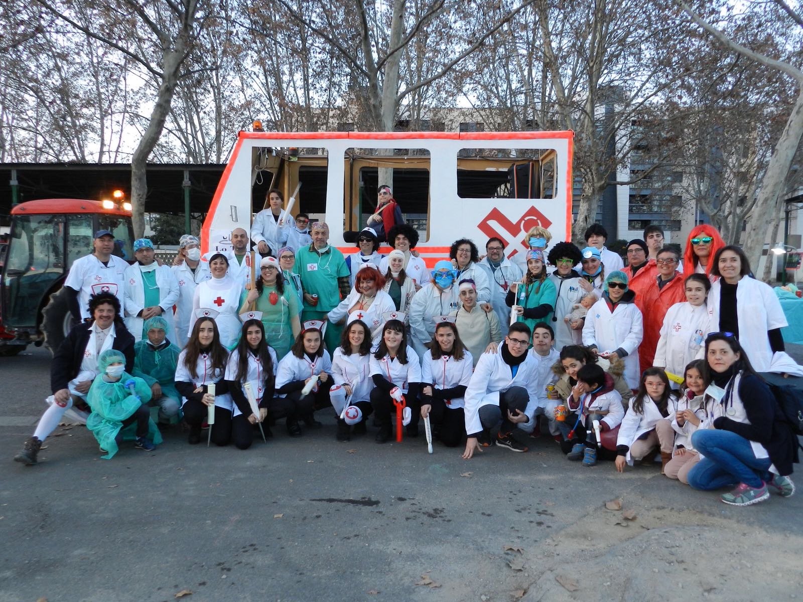 Disfressar-se és convertir-se per unes hores en un altre, interpretar un personatge diferent cada vegada, fer teatre, esdevinir algú diferent cada any que passa, encara que sigui com en el nostre cas, dins d’una colla. Aquest cop, infermeres i metges escoltaven una ambulància i un malalta encamillada que es queixava d’escalfors a la panxa. Una comparsa simpàtica i divertida. La rua és molt gratificant, tant en el moment de la desfilada com durant les setmanes anteriors on dissenyem, construïm, traslladem, custodiem, etc, etc, … la nostra “falla” particular. “Falla” que mai no crema però que sempre es transforma (primera llei de la termodinàmica). Tot va anar rodat una vegada més, malgrat del presses del nostre tractorista en acabar la jornada. Fins l’any vinent que anirem de …