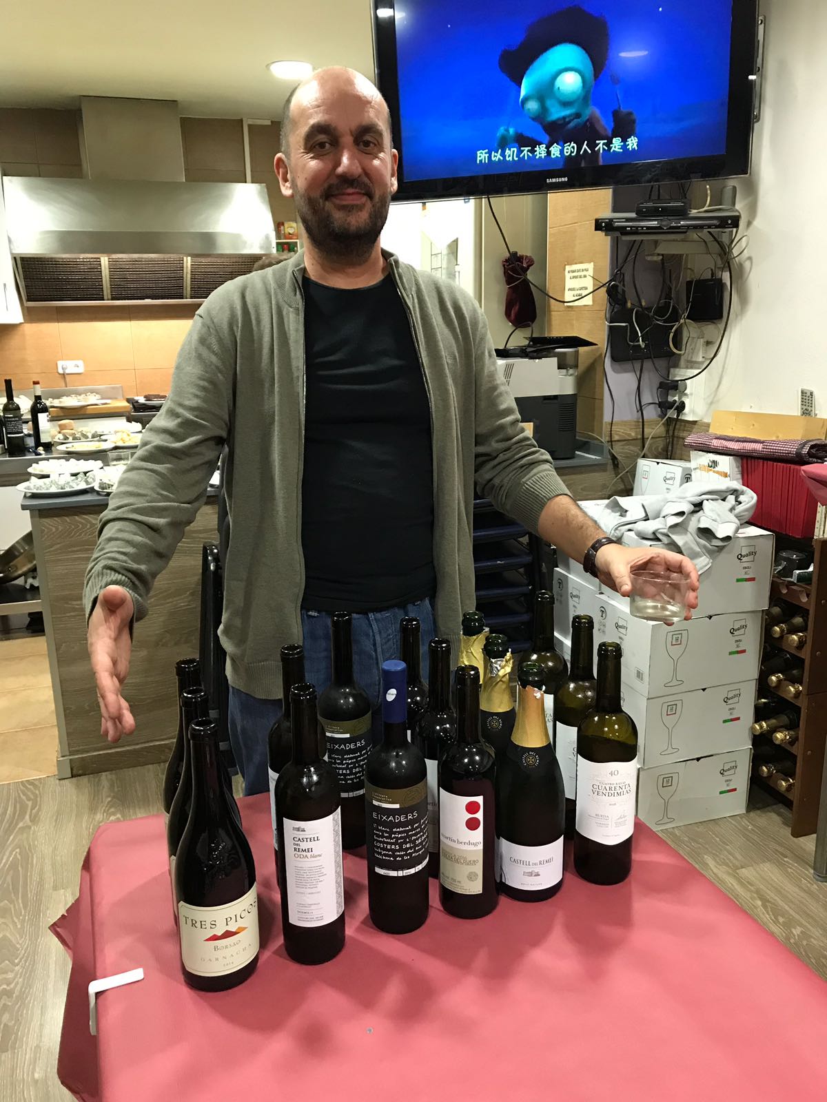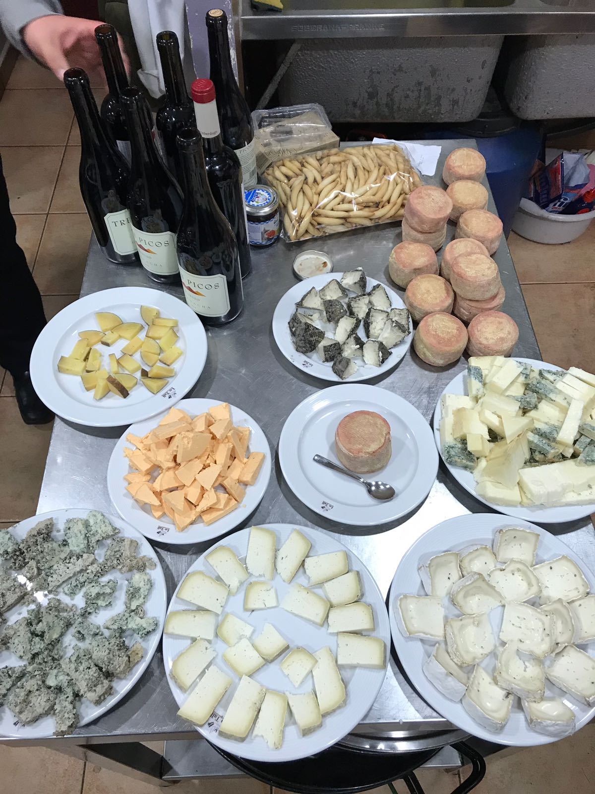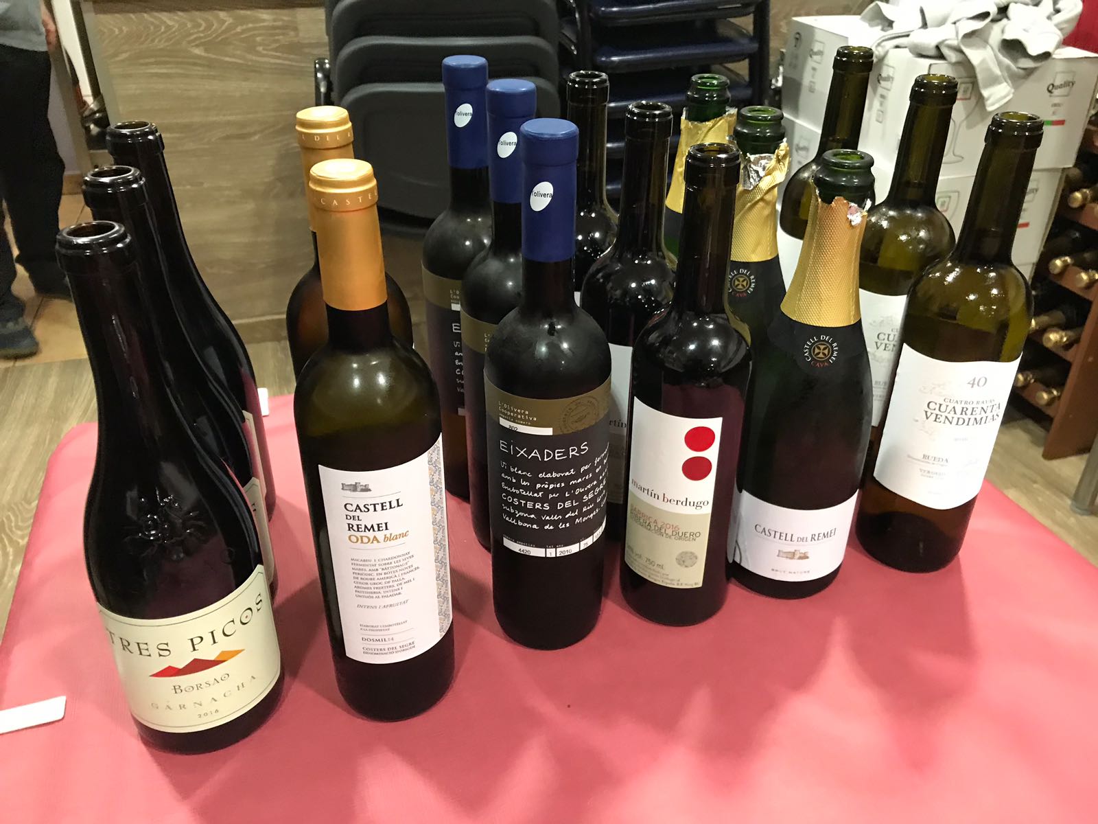 La taula de tast preparada per al repàs de generosos.