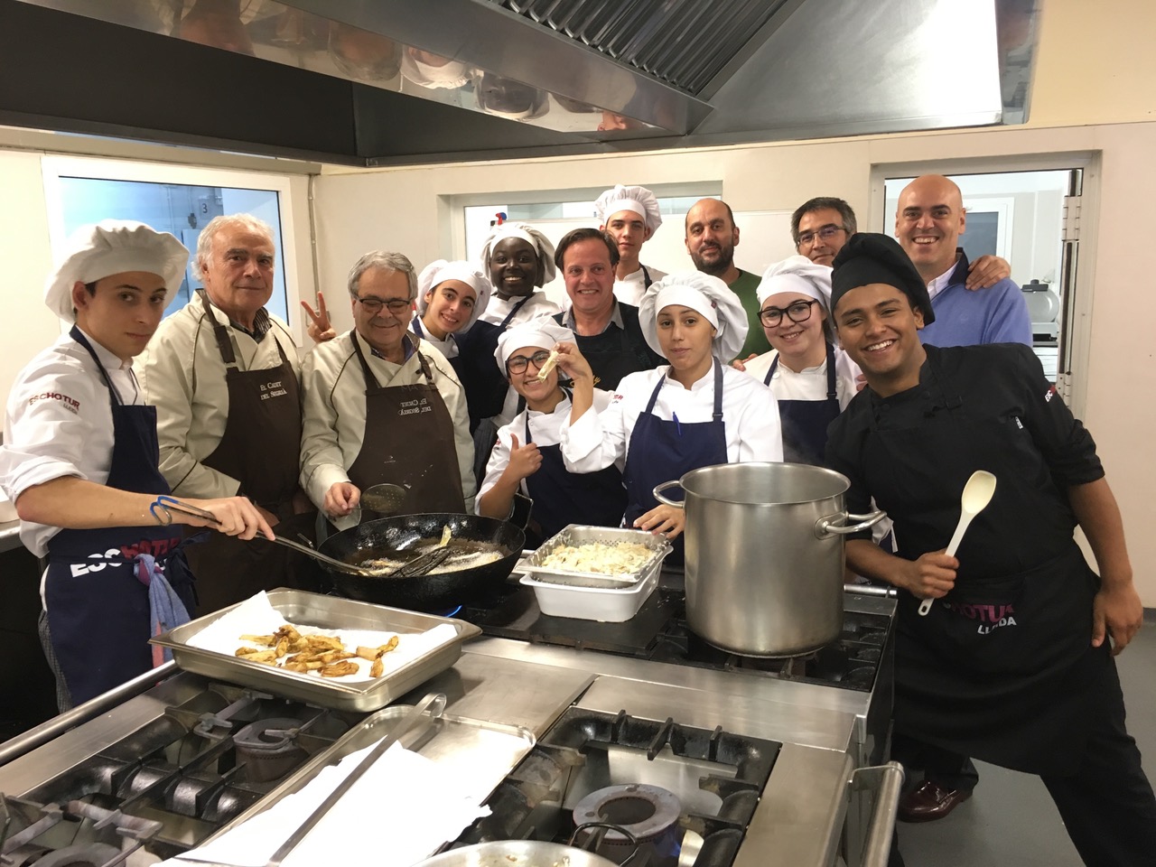 La fideuà XXL de la Eva i el Murgó, torrant els fideus abans del brou.