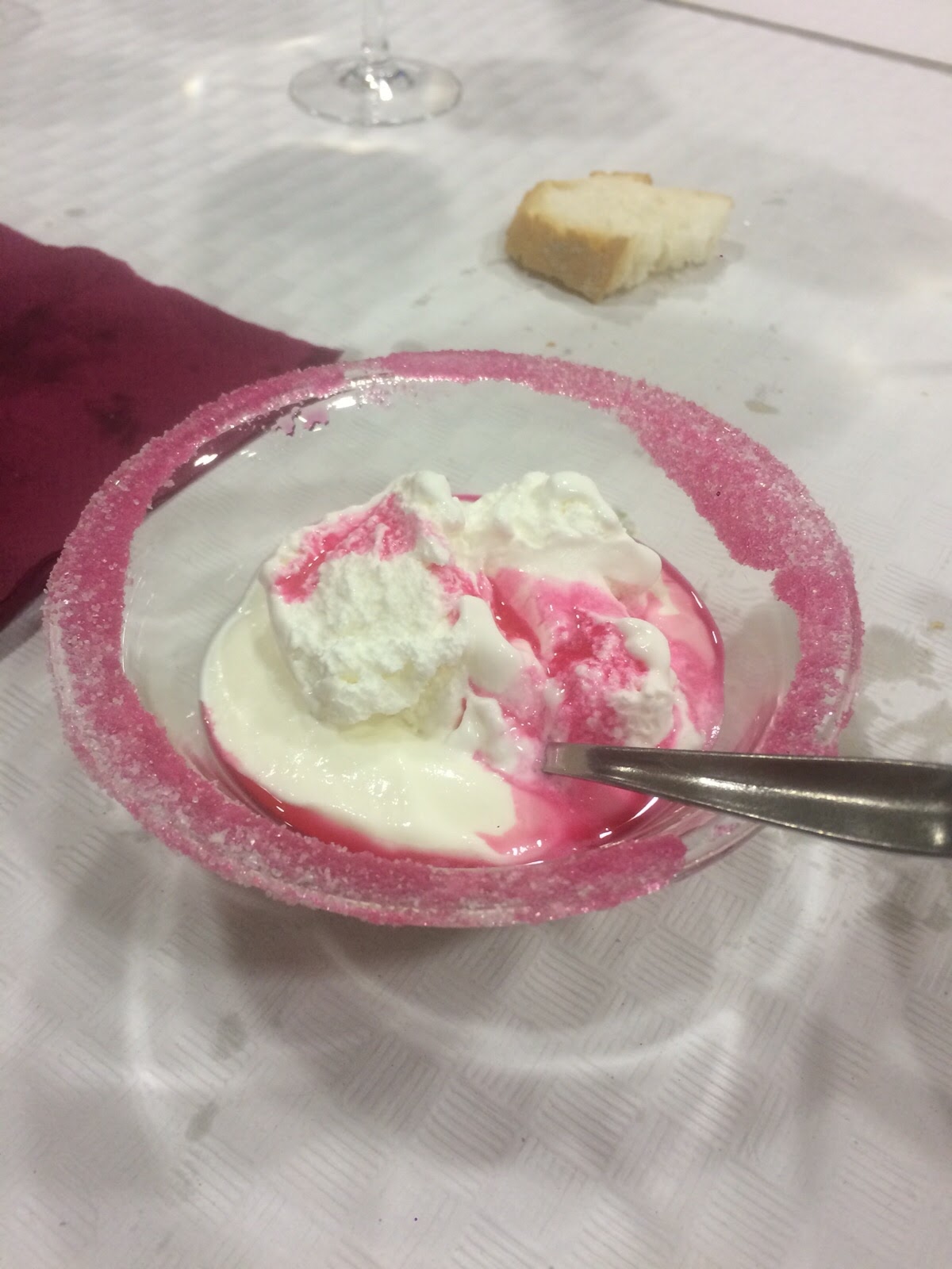 De primer Umami (fons de carbonara, spaguettis de tofona, vieira i foie) personalització magistral dels nostres socis. De segon, esturió amb guarniment de morro, orella i camagrocs , plat d’autor, en Joan Miquel. De postres, Filiberto, típic del Pallars, amb iogurt, gelat de nata i gerds. Molt bo, Tomàs.