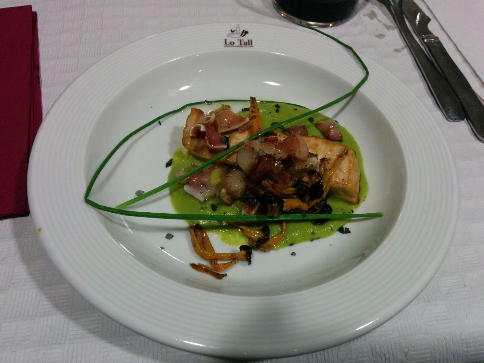 De primer Umami (fons de carbonara, spaguettis de tofona, vieira i foie) personalització magistral dels nostres socis. De segon, esturió amb guarniment de morro, orella i camagrocs , plat d’autor, en Joan Miquel. De postres, Filiberto, típic del Pallars, amb iogurt, gelat de nata i gerds. Molt bo, Tomàs.