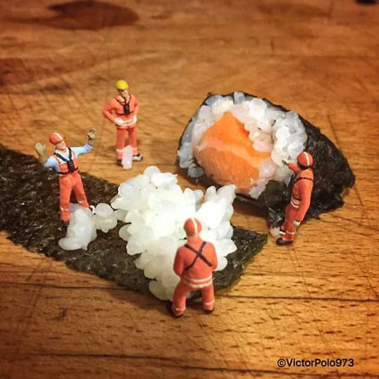 També la cuina japonesa ens agrada. De fet ens agraden totes les cuines i sobretot, provar-ho tot. Un gran amic de Lo Tall, Brauli, ens va ensenyar a elaborar i a menjar, a petits i grans, maquis, sashimis, tempures, … Boníssim i saníssim. Bueno, algún disgustillo hi va haver amb el wasabi. El fotògraf de Liliput, també es va inspirar aquesta vegada.